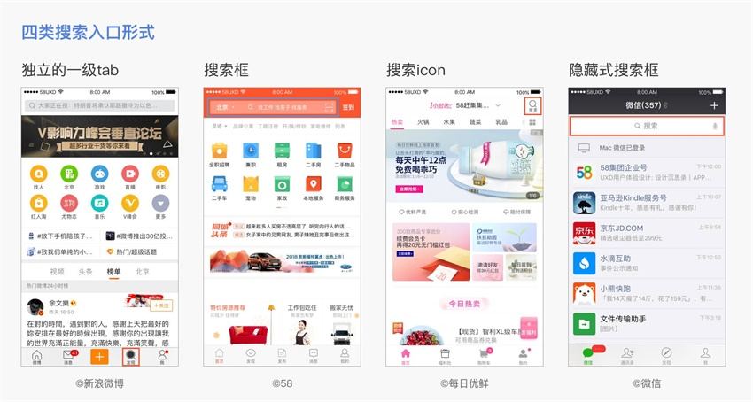 搜索入口具有提示和引导作用,常见的有 4 种: