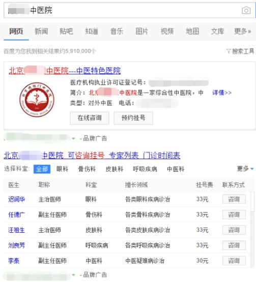 小道消息:我们周末从部分医疗SEMer圈内听说,有客户已经收到通知开始准备额外物料,包括医院图片、医保资质等更多的物料素材,拒推测,很可能搜索引擎会针对八准物料的要素做升级,可能会有新展现样式陆续上线(基于八项内容,推测可能会有图文混排、突出关注度的特殊图标或电话、预约等按钮功能,以及“医保定点”等资质信息的体现等)。