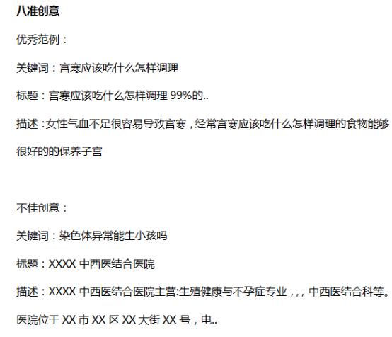 随着9月1日广告法(即《互联网广告管理暂行办法》)的正式实施,搜索引擎被判定为广告,除了引入《中华人民共和国广告法》之外,医疗行业同时引入了《医疗广告管理办法》的有关法规内容,近期广大医疗行业SEMer除了在关心搜索引擎推广标识修改为“广告”之外,更集中力量在进行法规要求的物料修改,以及关注新要求下的SEM优化技巧。