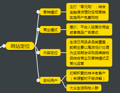 1)营销模式:该电商网站主打“零元购”,结合金融借贷理财变相营销实施用户免费购物